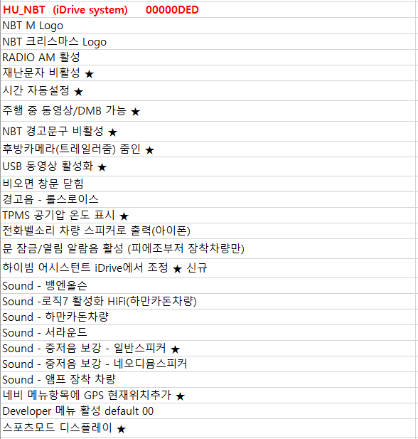 5. LDM_QalcgRel_v_Tacho_activ_kmh - werte 값을 63으로 변경 (99km/h 제한속도 풀기)