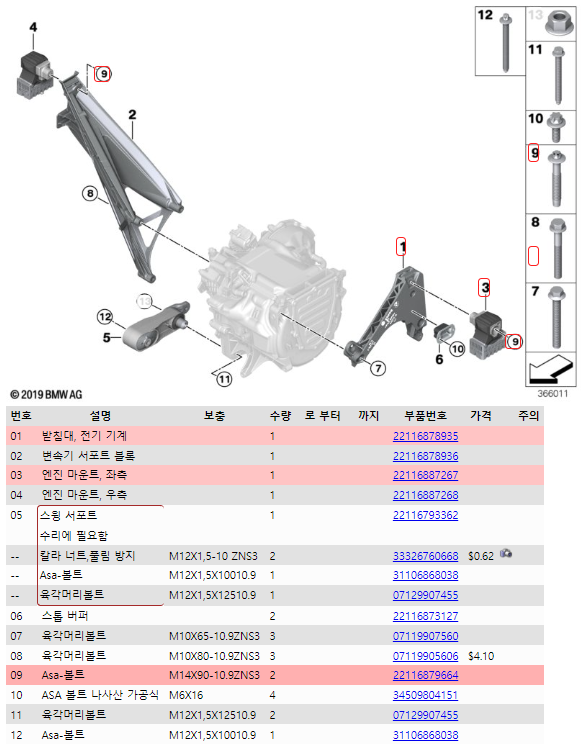 1세대 품번 그림의 분홍색 01이 개선품으로 확인된다.