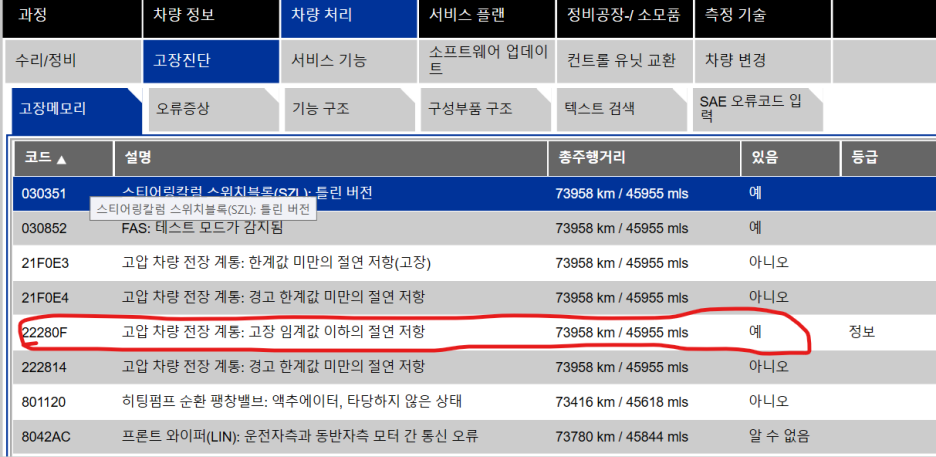 ※ 구동장치 에러가 점등되면 꼭 스캔을 물려보길 바란다.. 그냥 방치시 절연저항문제가 아니고 다른쪽 문제이면 크나큰 봉변을 당할수도 있다.....