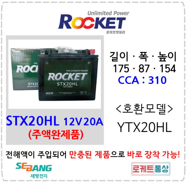 22년 4월에 12v 배터리를 교체했... 로케트 STX20HL