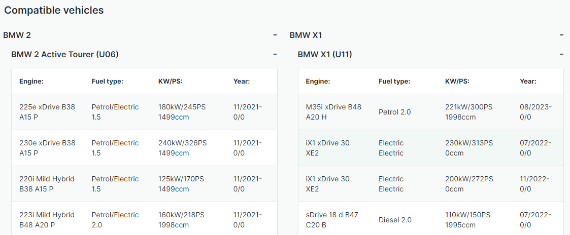 결론 : BMW 2 액티브투어러(u06)의 필터를 사면 되겠구만 ㅎㅎ;