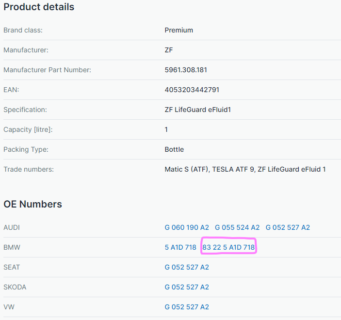 현재까지 BMW edrive 5세대에서 사용할 수 있는 오일은.....대충..이정도..