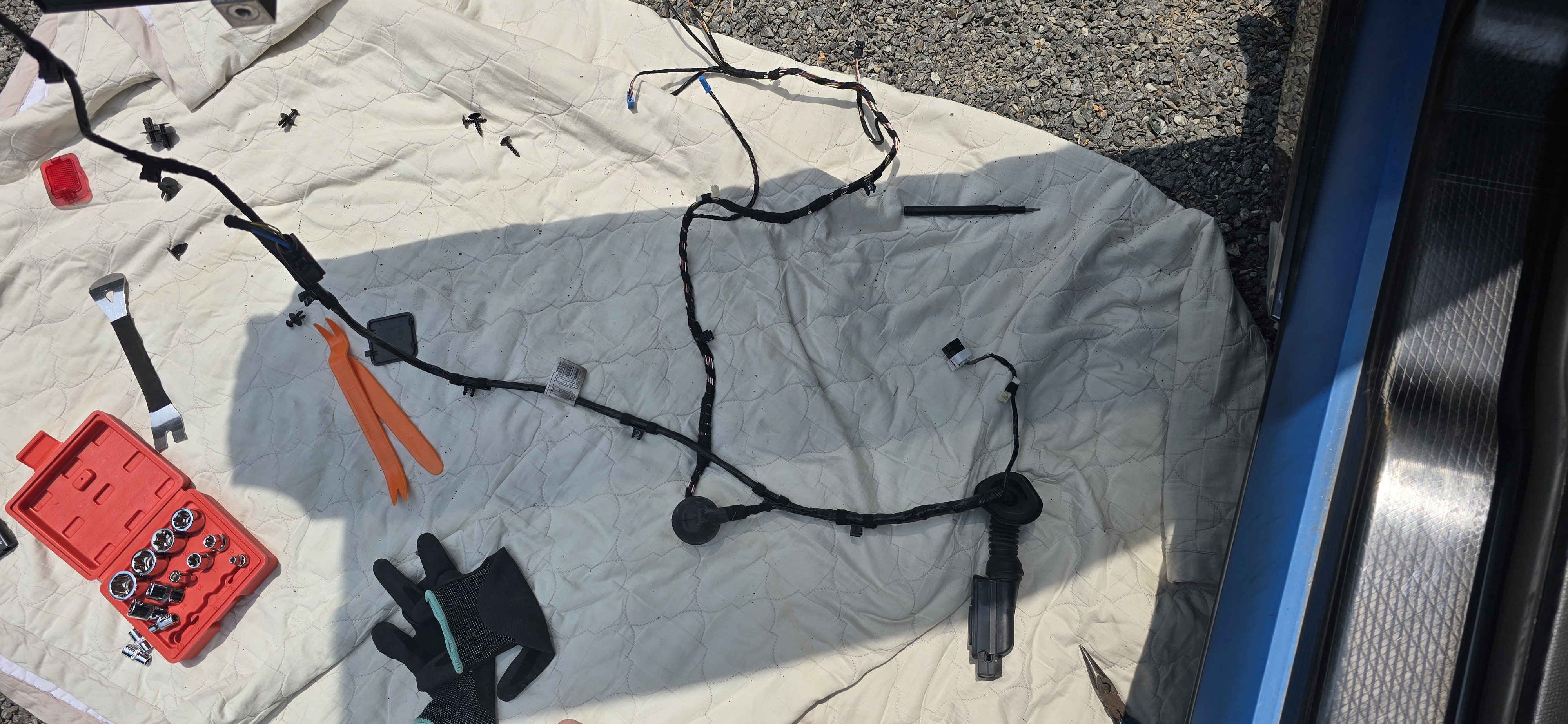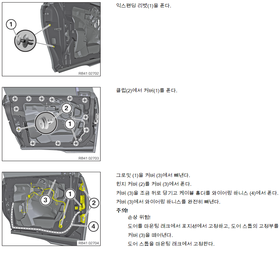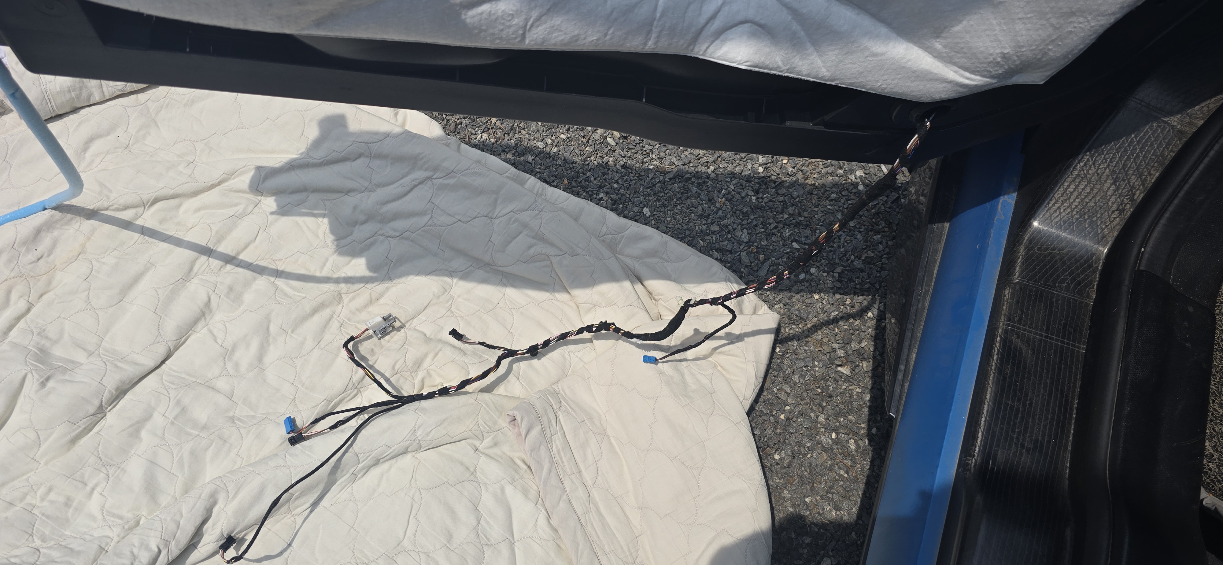 -- 커넥터빼고 주름관은 밀어내서 배선이 보이면.. 이쪽에서 해결 될듯 한데....안되면... 도어트림을 뜯어야....